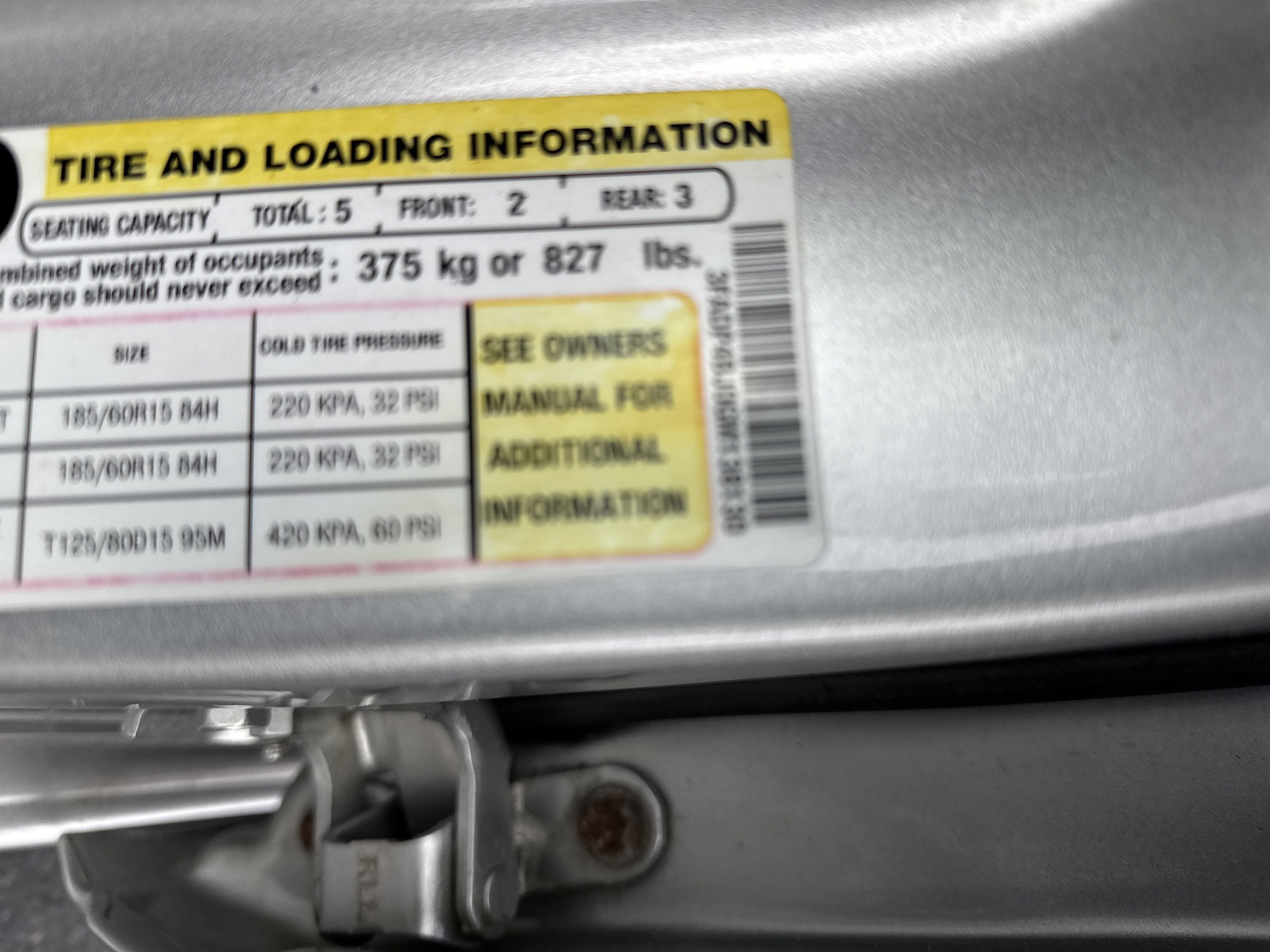 - Rear Tire Size: P185/60HR15