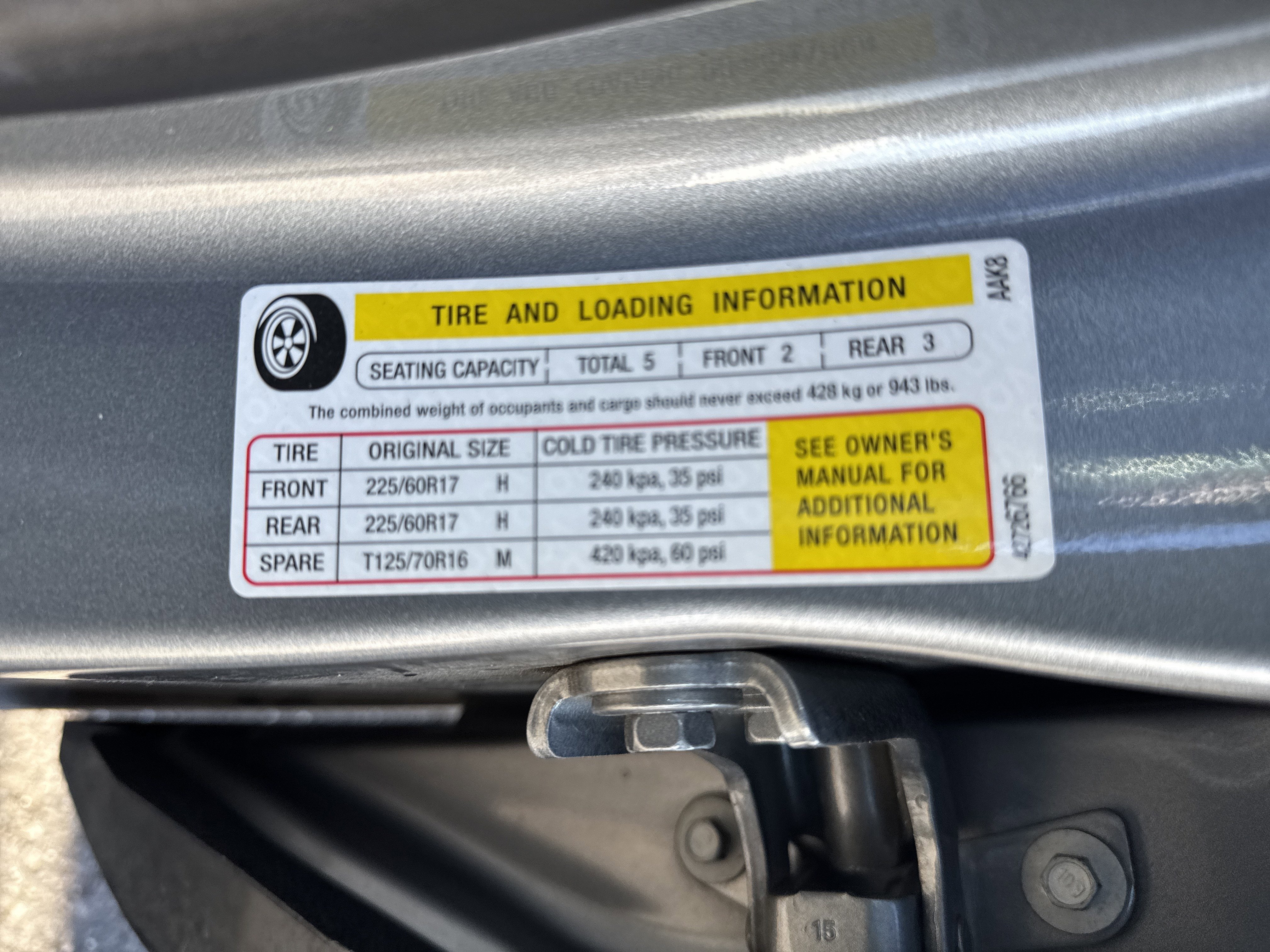 - Tires, 225/60R17 all-season, blackwall (STD)