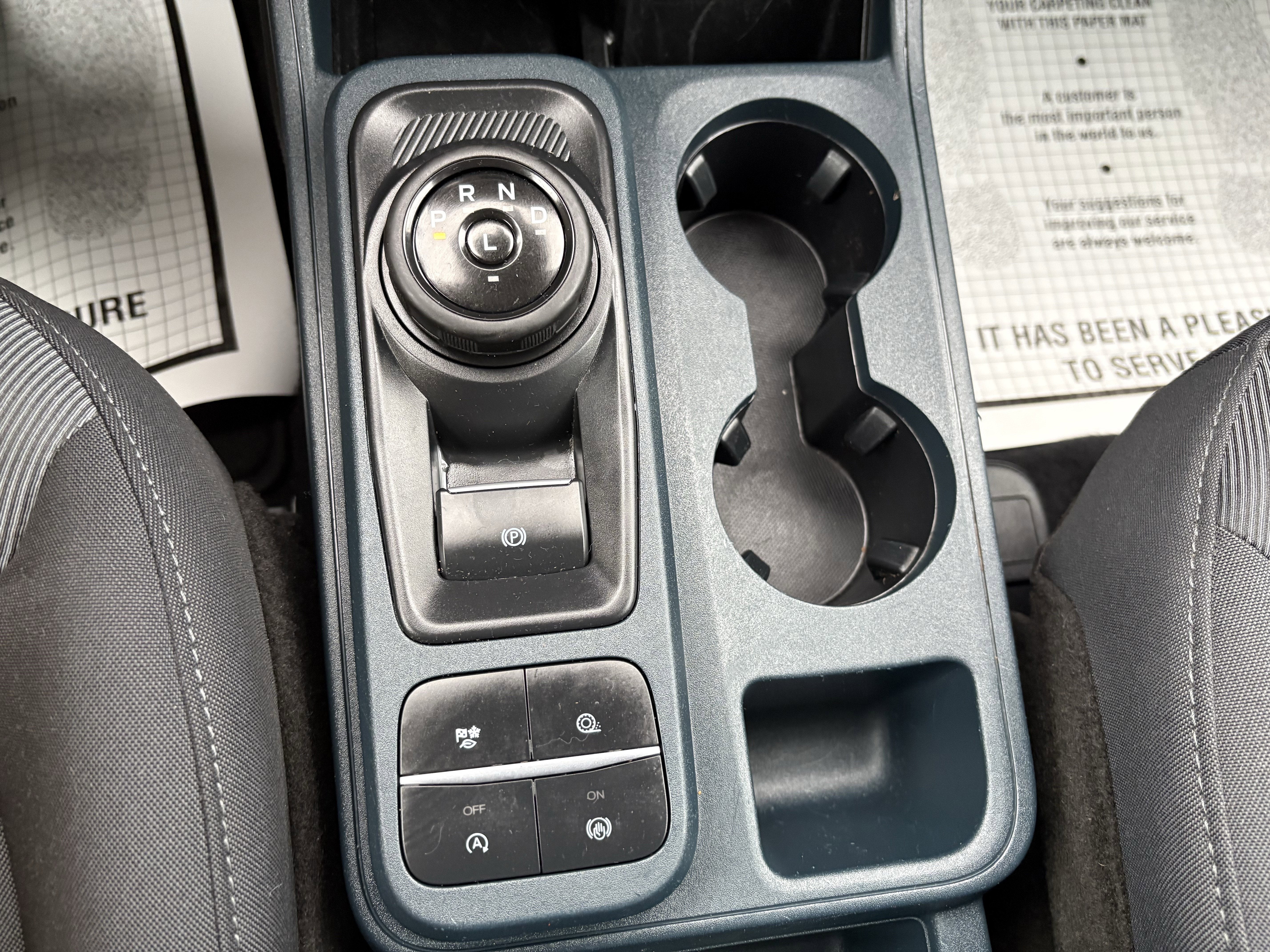 - Front Cloth Bucket Seats -inc: manual 6-way adjustable driver and 4-way manual adjustable passenger, front floor console w/eShifter, armrest and storage bin