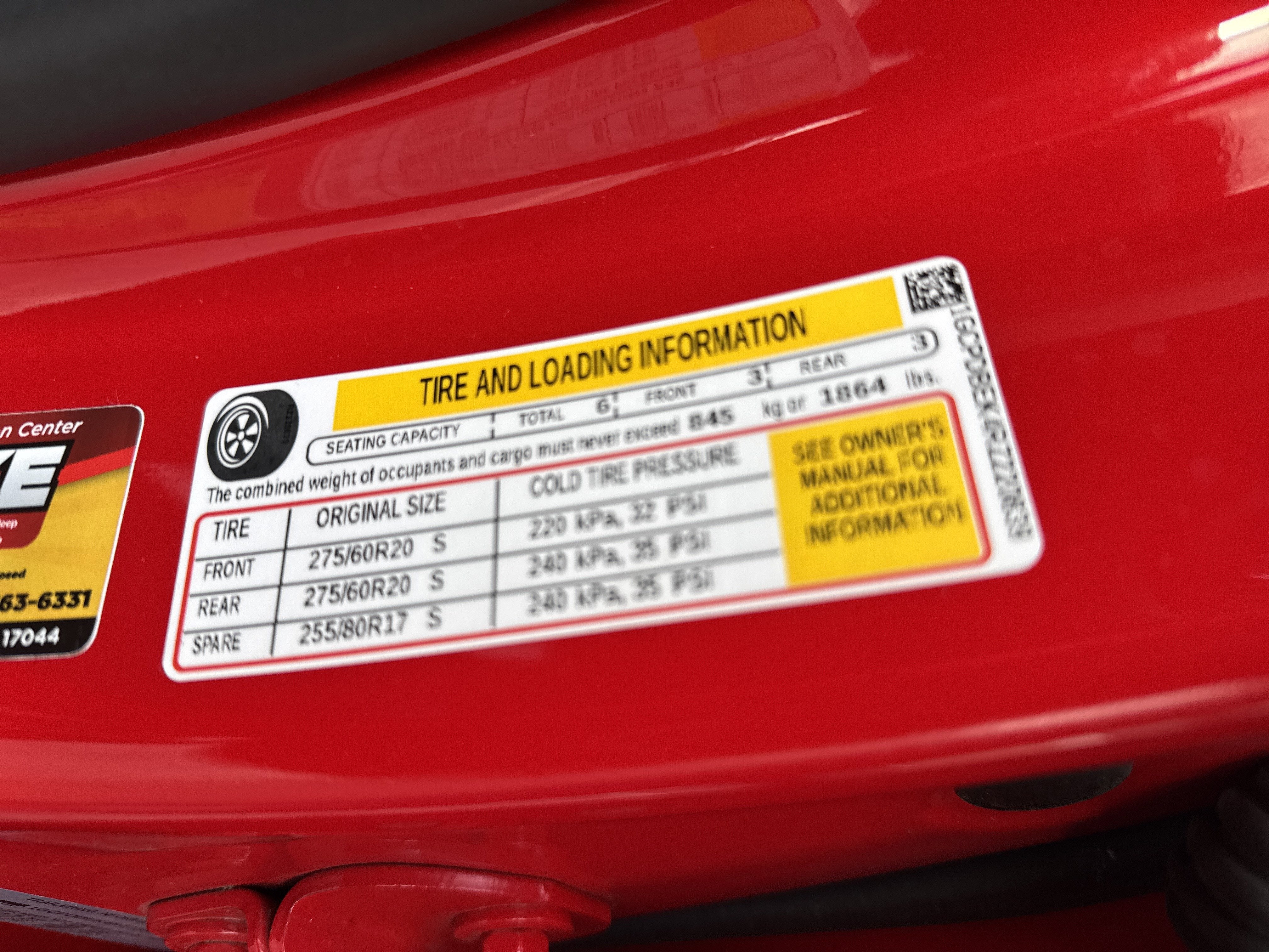 - Tires, 275/60R20 all-season, blackwall